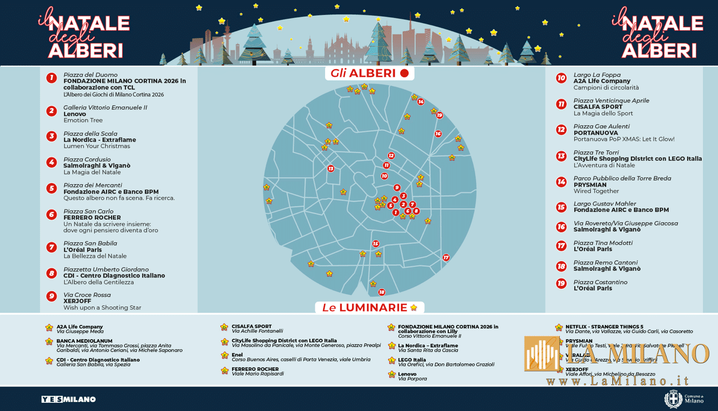 continua a leggere: “Milano accende il Natale 2025: oltre 30 installazioni luminose e l’Albero dei Giochi di Milano Cortina 2026 in piazza Duomo” – su LaMilano.it
