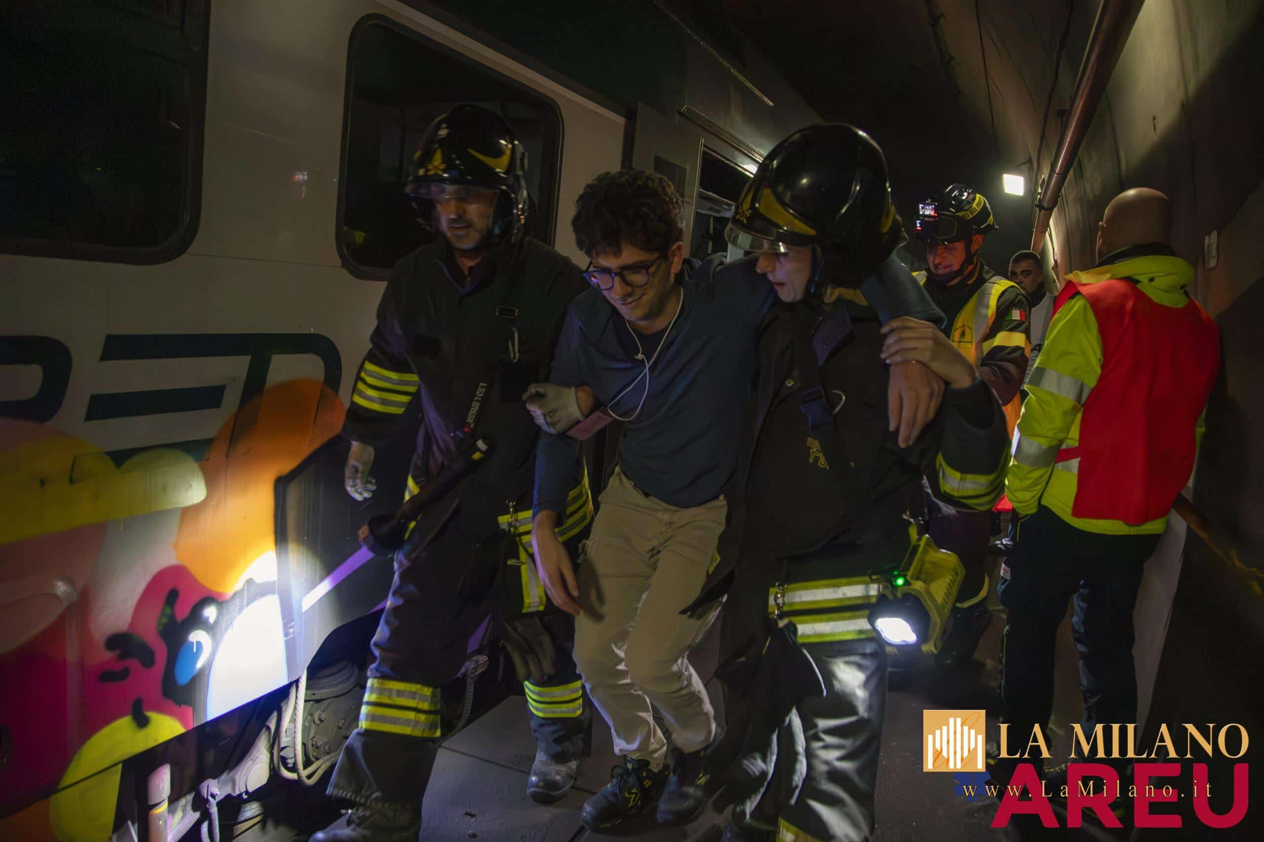 L’esercitazione, durata fino alle prime ore del mattino, ha simulato un principio d’incendio a bordo di un treno con decine di passeggeri da evacuare.