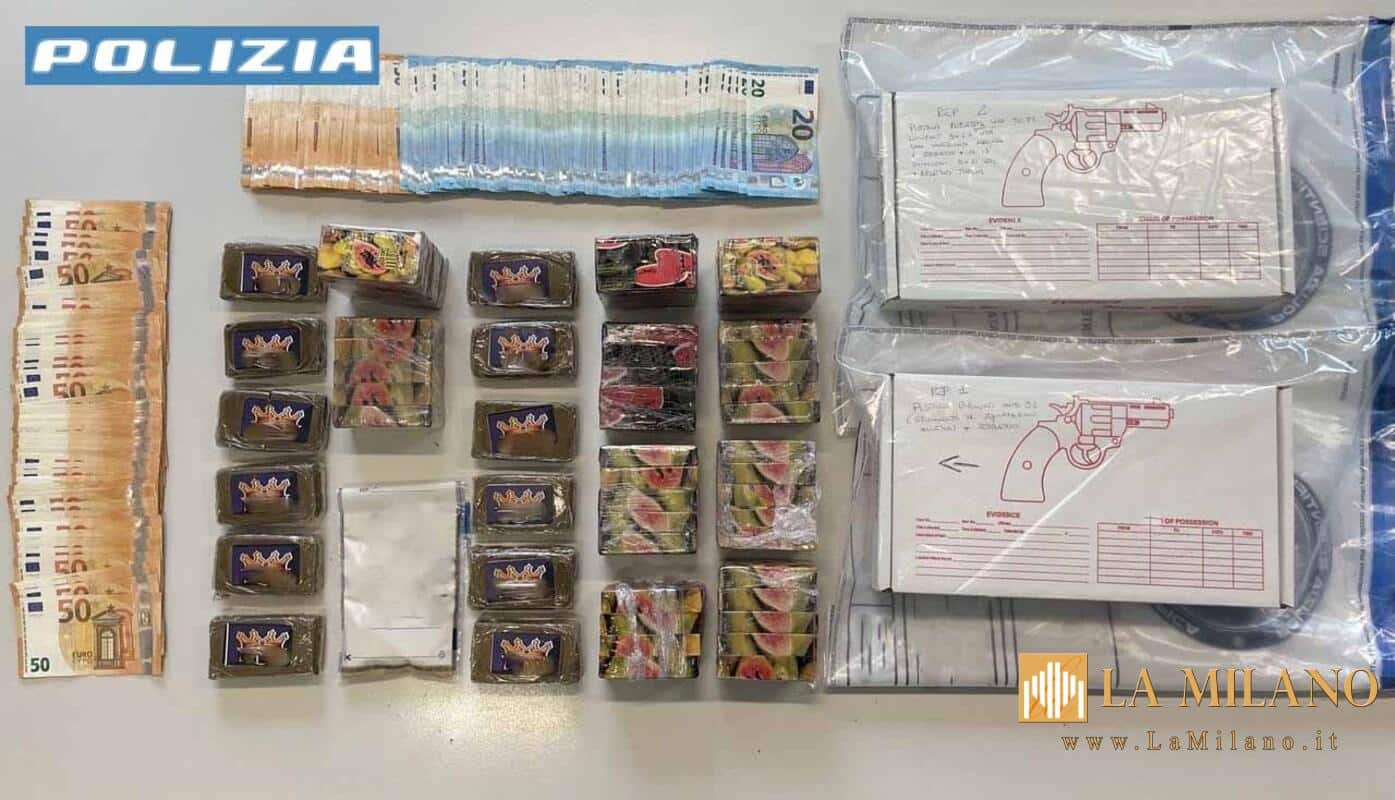 Milano, arrestati due uomini: sequestrati oltre 6 kg di hashish e una pistola con matricola abrasa