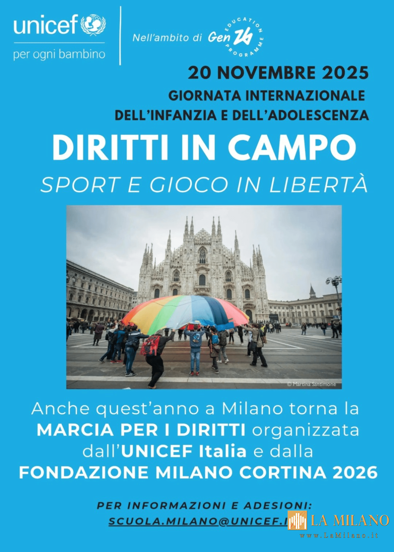 continua a leggere: “UNICEF Italia e Fondazione Milano Cortina 2026 lanciano la Marcia dei Diritti: “Diritti in campo, sport e gioco in libertà”” – su LaMilano.it